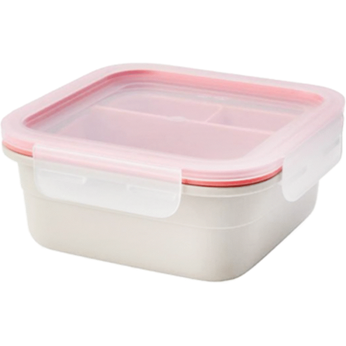 • إحدى القطع الداخلية أكبر وتناسب حفظ الطبق الرئيسي، والباقي يمكن استخدامها للسلطة أو الحلوى